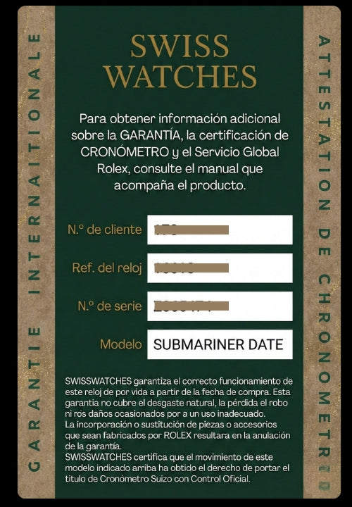 Certificación Cronómetro Superlativo (COSC + Certificación Rolex tras el ajuste del mecanismo)